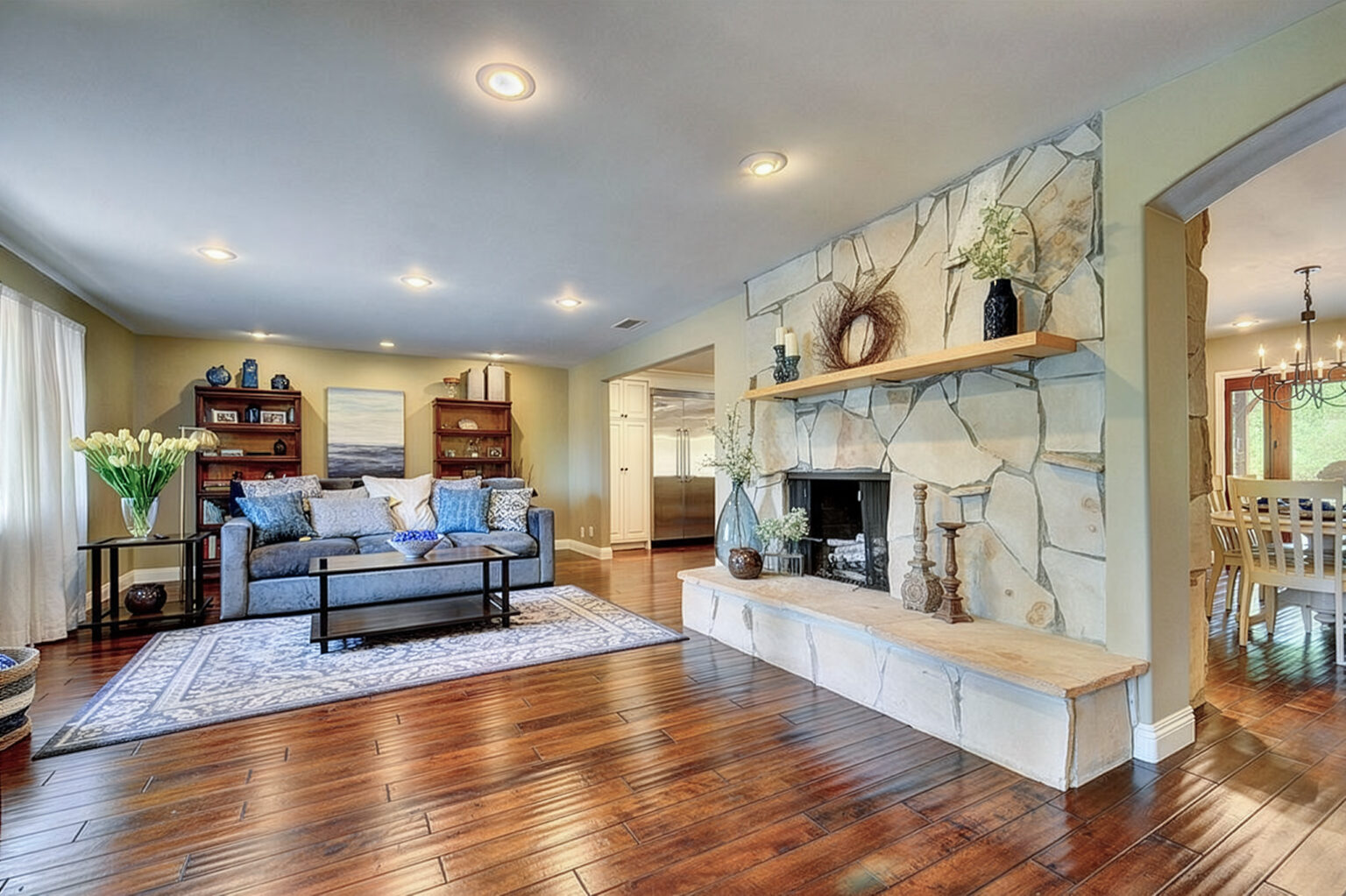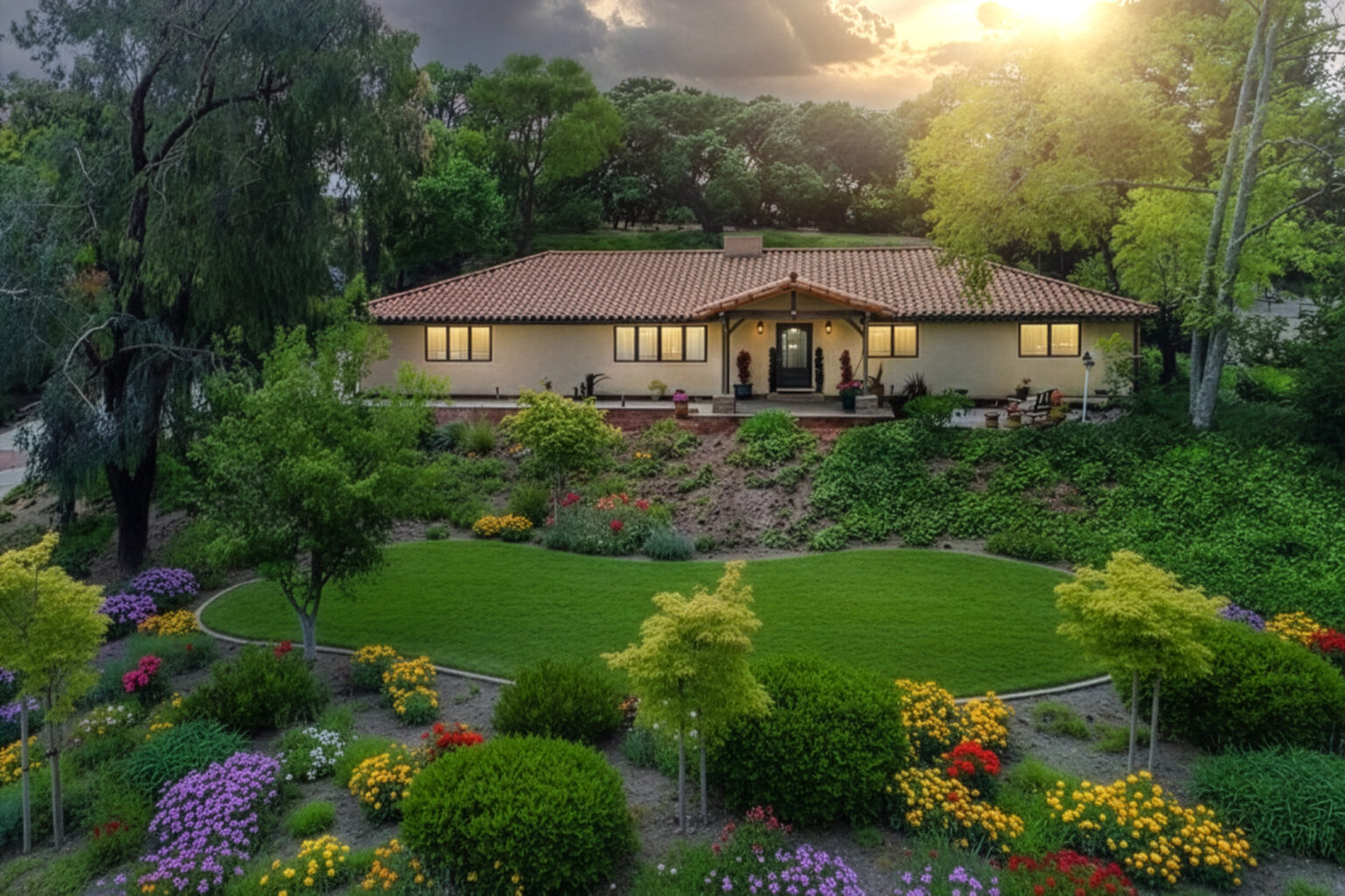 Immerse yourself in this enchanting single-story Conejo Oaks retreat, wrapped in a fantasy forest of towering trees and lush greenery where sunlight filters through the canopy in golden, magical rays! Step inside to an open, light-flooded floor plan with gleaming wood floors and high-end finishes. The gourmet kitchen dazzles and flowers into living spaces warmed by a striking flagstone fireplace. Your master oasis features vaulted ceilings, a romantic travertine-accented fireplace, and spa-like bath with whirlpool tub, and dual vanities. This woodland wonder pulses with fantasy and everyday luxury…